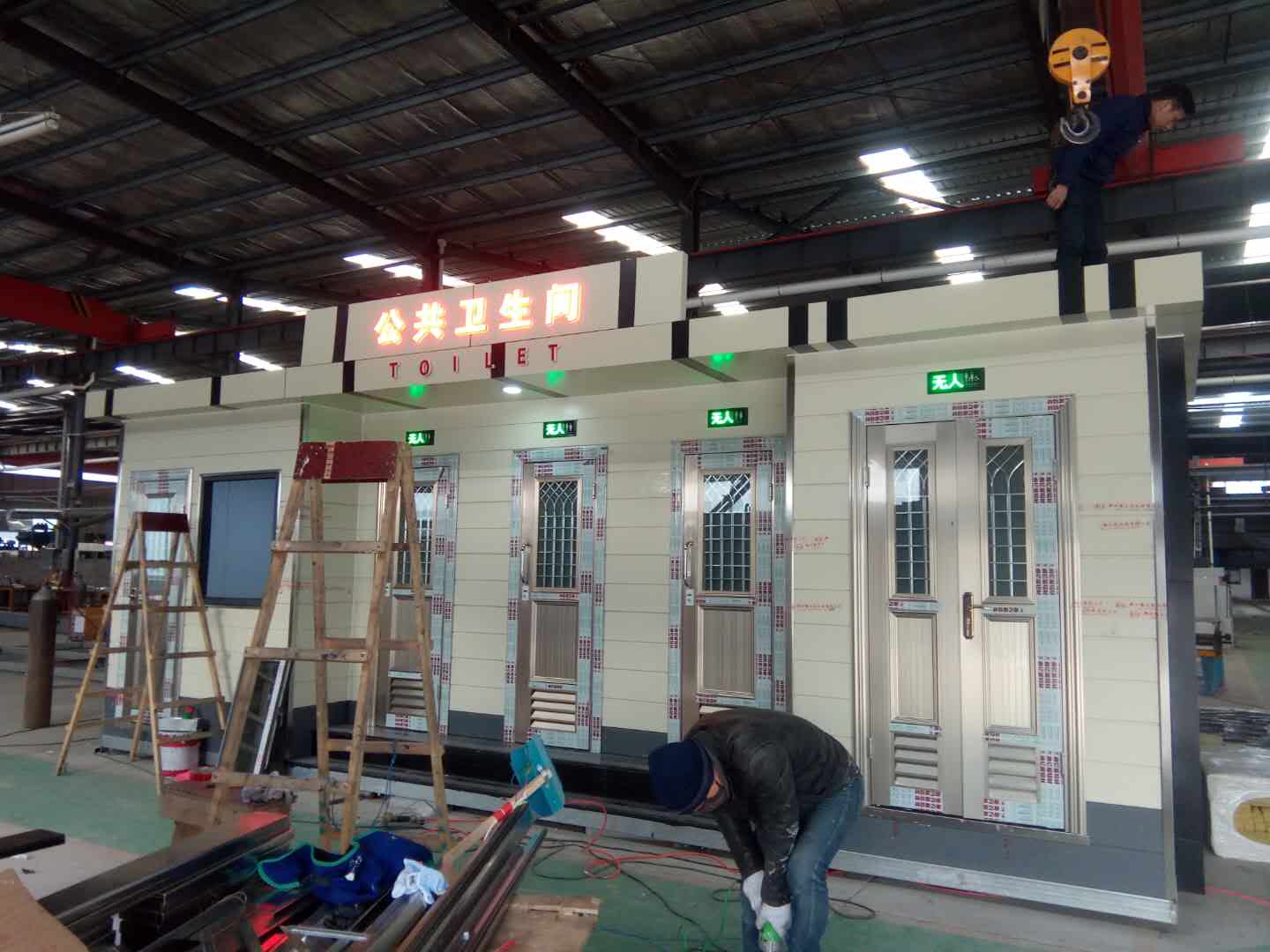 1、房體結(jié)構(gòu): 采用輕鋼龍骨結(jié)構(gòu),鋼材全部使用國家標(biāo)準(zhǔn)鍍鋅鋼材。根據(jù)房體的大小特選用國標(biāo)方管(50-100)焊接而成。鍍鋅管厚度為2.8mm,方管經(jīng)過除銹后進(jìn)行鍍鋅、防腐處理。這樣就會延長廁所使用壽命。